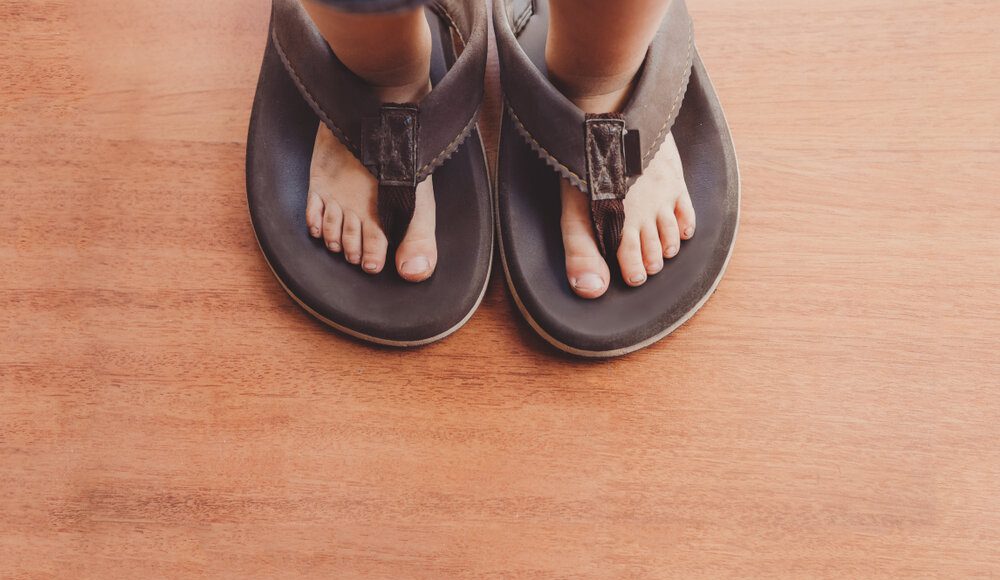 ابتعدت وتركتها تواصل المحاولة، وعندما لم تتمكن من إدخال الحذاء في قدمها، دمدت قليلاً بينما واصلت المثابرة.