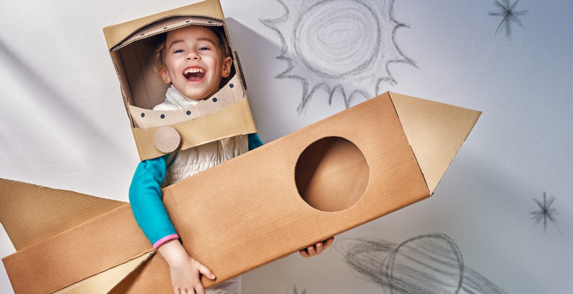 اعطي الطفل صناديق وأنابيب وعلب كرتون ومواد أخرى ممكن أن يستخدمها الطفل للتشكيل، واتركي للطفل ابداعاته واستمعي لما يقوله أثناء العمل.
